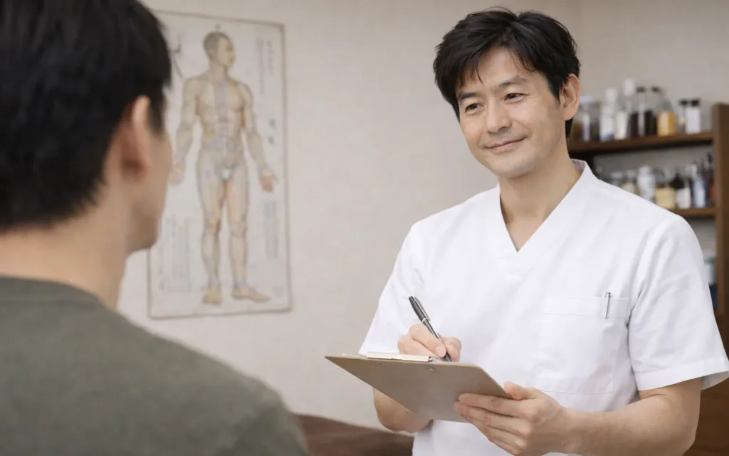 施術中の鍼灸師